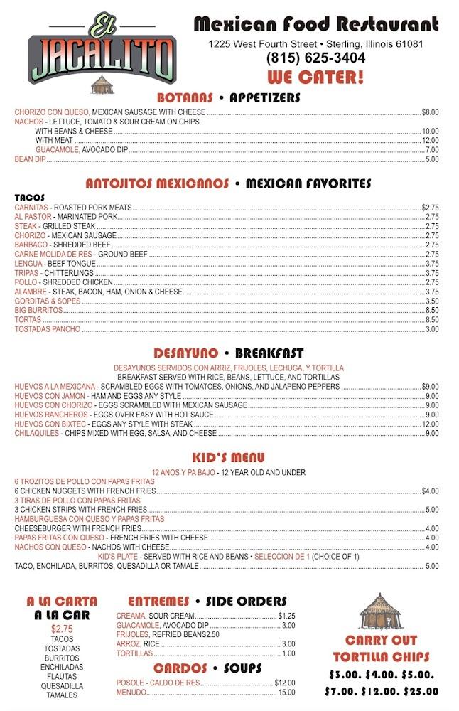Welcome to El Jacalito, your go-to destination for authentic Mexican cuisine in Sterling, IL. Located at 14 E 3rd St, we offer a vibrant dining experience with a relaxed atmosphere perfect for lunch, dinner, or solo dining. Enjoy our specialties featuring traditional flavors, quick service, and a variety of beverages, including cocktails and local beers. We cater to all needs with accessible seating, takeout options, and delivery. Families are welcome, with a dedicated kids’ menu and high chairs available. Join us for brunch or dinner, and savor our delicious meals in a friendly environment. Reservations are accepted!